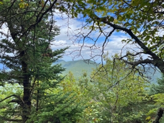Once you reach about 1.3 miles into your hike, the rest of the way is easy sailing. The trail through the pine woods was full of moss and looked magical. It also looked like a section in Panther Mountain. At one point, it did seem like we were never going to end this part, but alas, the first overview came up. We chose to climb the rock instead of going around. Good thing I did my yoga in the morning. Once up, we enjoyed the views of the surrounding green Catskill mountains.